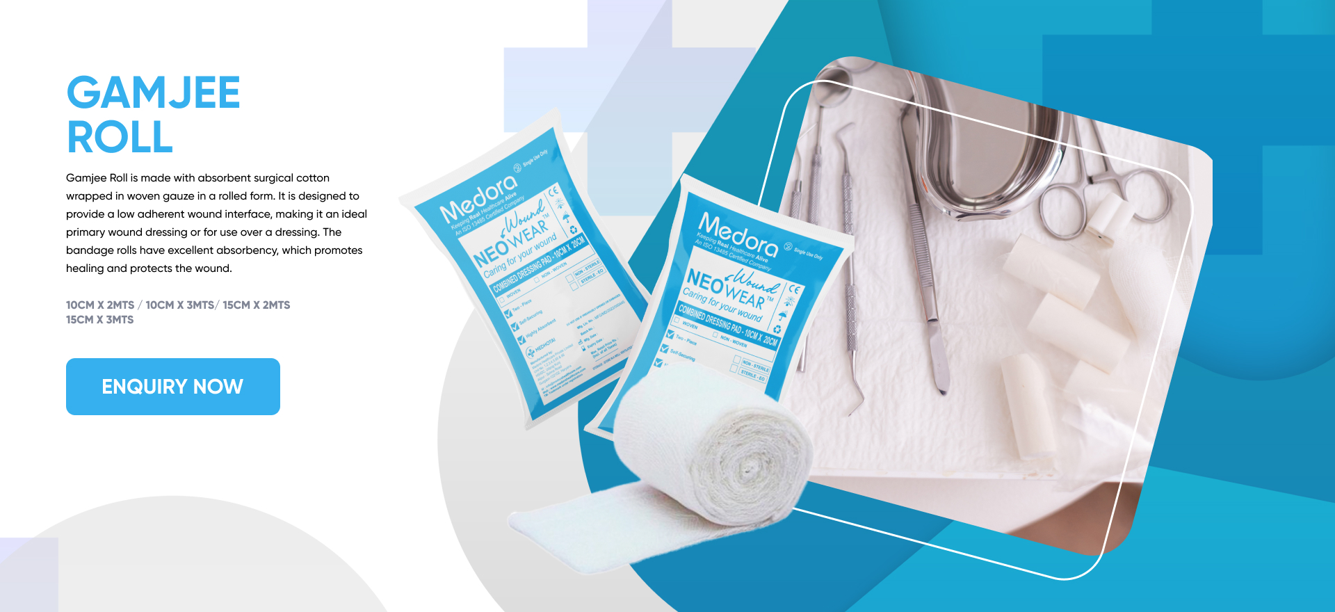 Medhora's Gamjee Roll is made with absorbent surgical cotton wrapped in woven gauze in a rolled form. It is designed to provide a low adherent wound interface, making it an ideal primary wound dressing or for use over a dressing. The bandage rolls have excellent absorbency, which promotes healing and protects the wound.